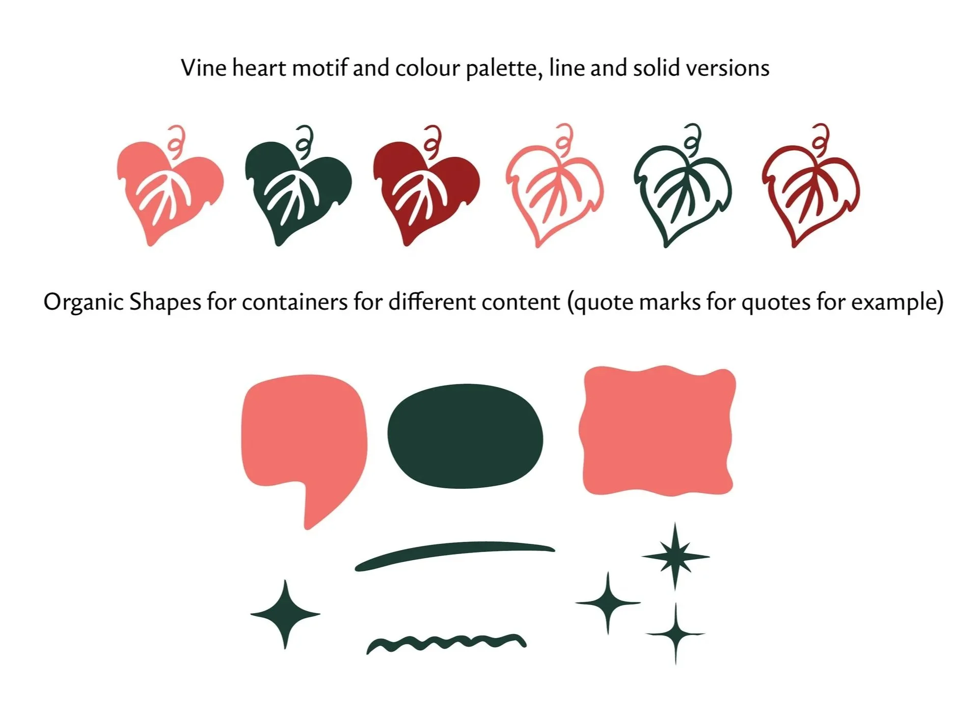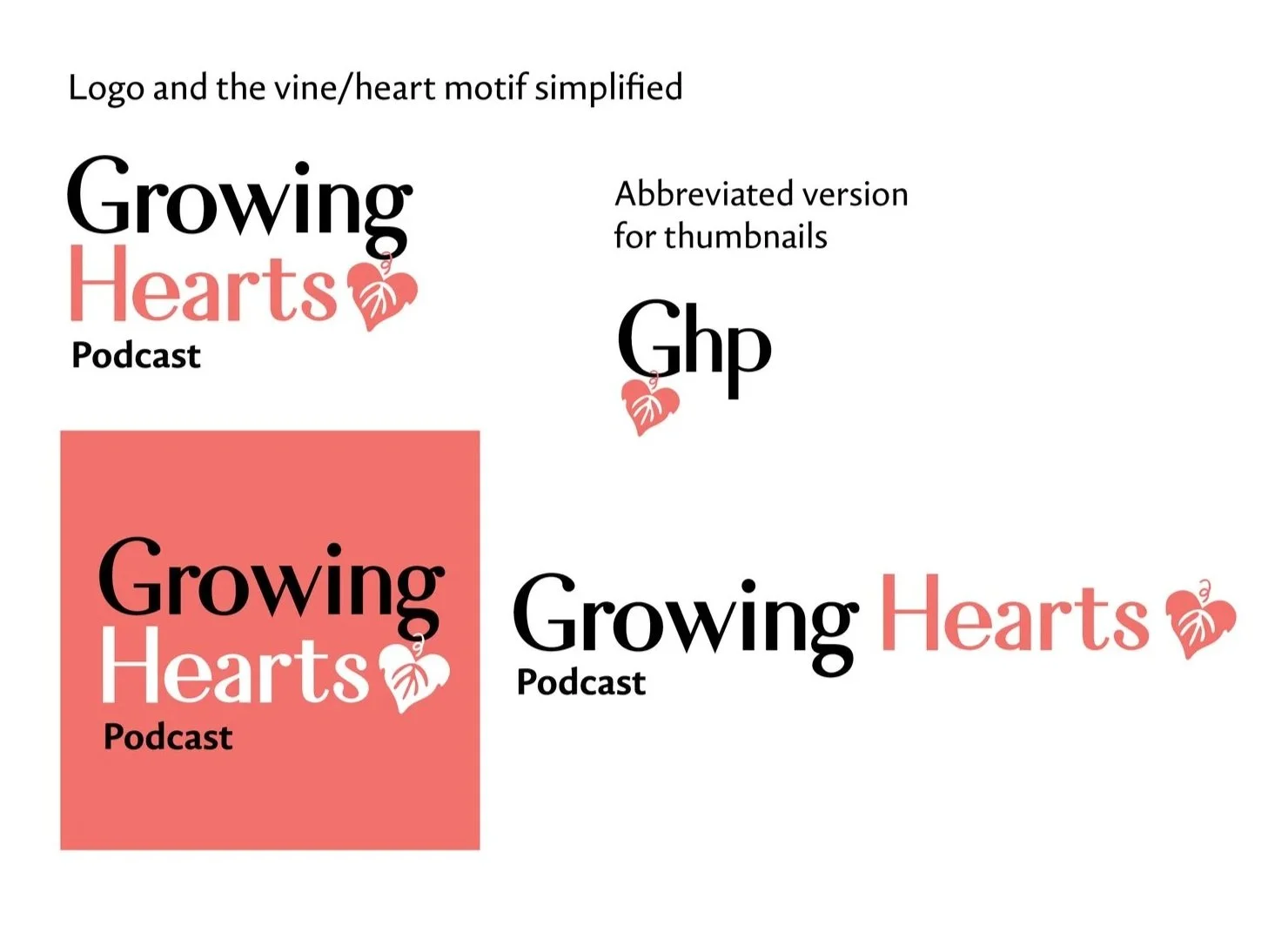 I began by simplifying the heart and vine motif into a scalable graphic symbol. The typography was updated, and an abbreviated logo version was created to ensure legibility at small sizes, such as thumbnails. Then I created a visual systems and Canva templates so that by adhering to the system and guidelines, brand consistency in language and visuals will be achieved.