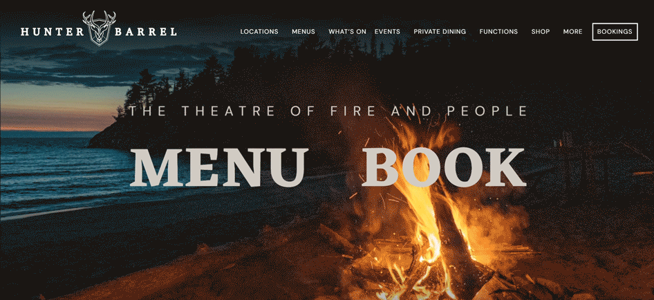 The Brand: Hunter & Barrel is a premium dining experience built around the adventurer's table: rustic, fire-touched food that speaks to something primal. The brand's photography is rich with texture: flame, smoke, char, the shimmer of a sear.